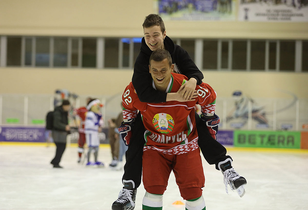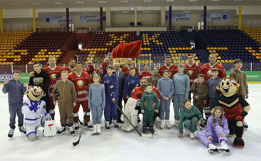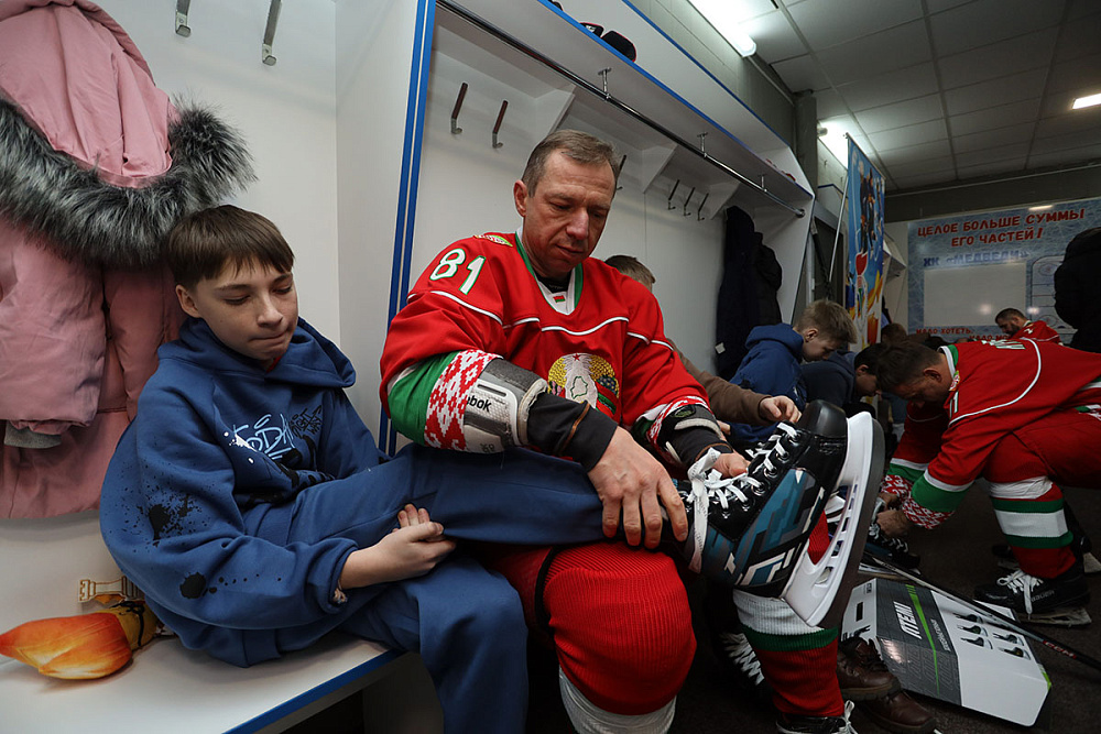 Сначала ребят команда Президента встречала на ледовой арене дворца спорта, где ребята учились кататься на коньках. Узнав, что дети любят кататься на коньках, хоккеисты решили устроить для детей настоящий праздник на льду. Первое знакомство прошло в раздевалке, куда команда приехала с подарками - новенькими коньками. Кто-то из детей хорошо и уверенно стоял на коньках, а кто-то делал свои первые шаги на льду. Ребята осваивали змейку на льду, учились держать клюшку и бросать по воротам. К концу мастер-класса уже все дети уверенно катались и даже захотели стать фигуристами и хоккеистами.