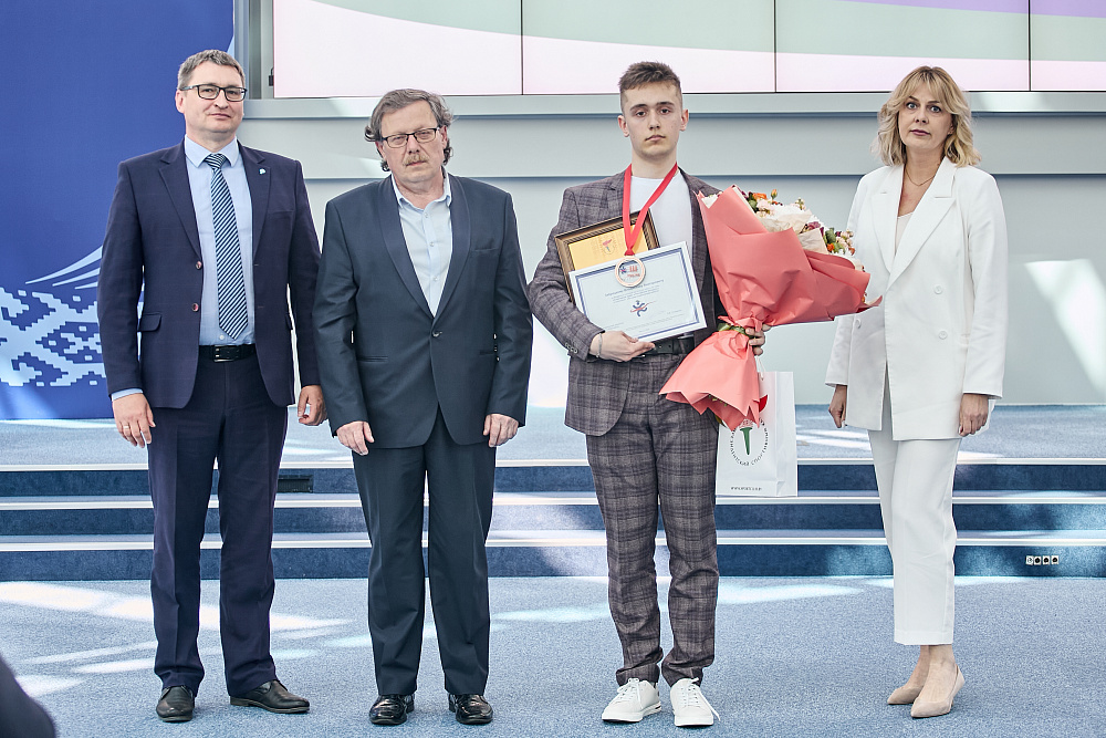 От имени республиканского государственно-общественного объединения «Президентский спортивный клуб» дипломы и ценные призы (ноутбук, смартфон) победителям и лауреатам конкурса в номинации «Лучшая студенческая работа» вручили Наталья Павловна Гурьянчик и Виктор Федорович Деревцов.